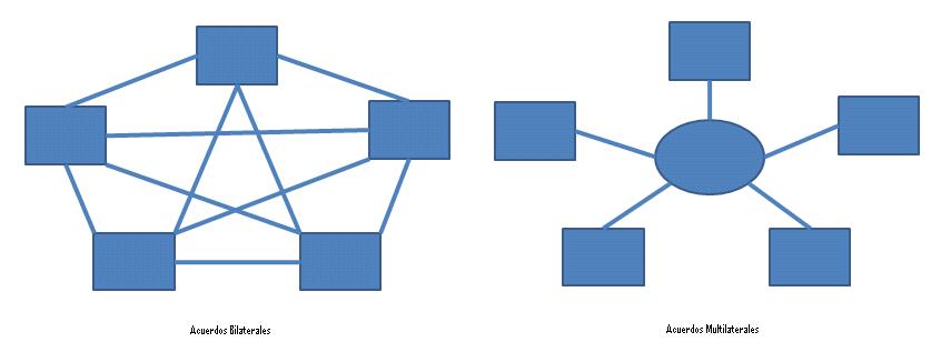 Acuerdos Multilaterales : En este caso cada sistema heterogéneo solo tiene que establecer una sola interface estándar con el modelo multilateral.