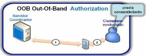 El operador del sistema (mesa de entrada) realizó esta operación de autenticación sobre el Servidor Autenticador, y esto le da derechos para acceder a determinados recursos de información entre los que se encuentran los requisitos del trámite. Si estos recursos están definidos (parametrizados) como recursos que requieren del consentimiento del involucrado (están condicionados a su consentimiento), entonces en ese preciso momento (cuando se los está solicitando) el Servidor Coordinador utilizando el mecanismo de 2 factores, enviará un mensaje al celular del involucrado para: