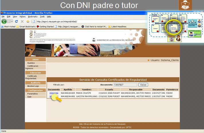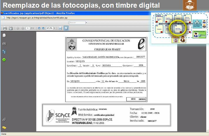 Un ejemplo de Sistema Cliente es que denominamos “e- Fotocopia”, que es utilizado para la generación de documentos electrónicos con timbre digital. Estos documentos los genera a partir de los datos registrados en una o varias fuentes auténticas, por ejemplo el Certificado de Alumno Regular. Estos documentos con timbre digital permiten reemplazar a las fotocopias exigidas como requisitos en los trámites. (Ver caso real más adelante).