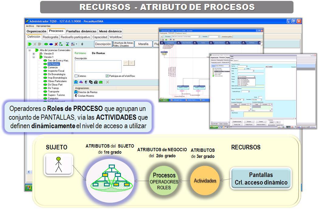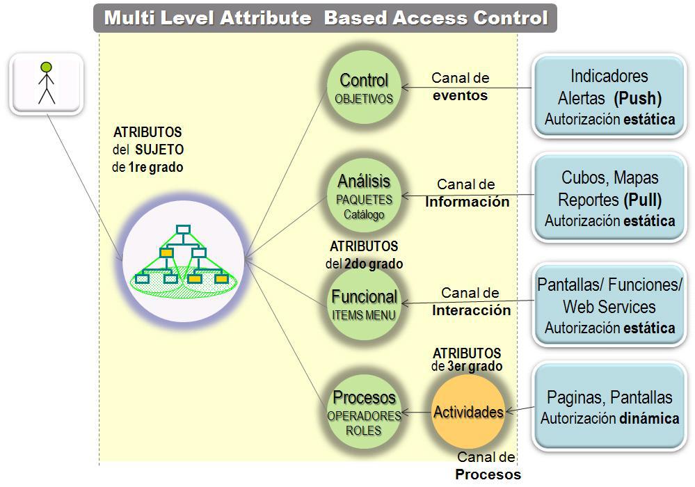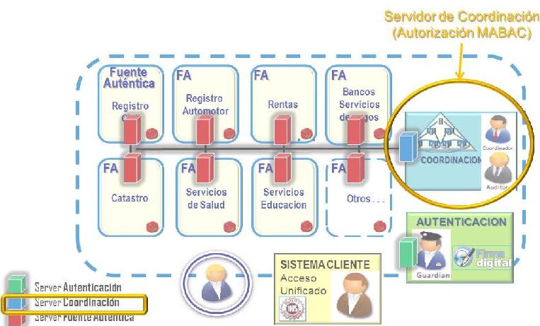Tecnológicamente: Se materializa por un software (Server Coordinador), mediante un modelo de asignación de recursos basados en atributos de varios niveles (MABAC) Multi level Attribute Based Access Control (ver anexo White Paper MABAC). Este modelo de autorización fue creado para facilitar la definición, el mantenimiento y el control de los accesos de gran cantidad de usuarios internos a las organizaciones y externos, en un contexto tan complejo y diverso como es el gobierno electrónico.