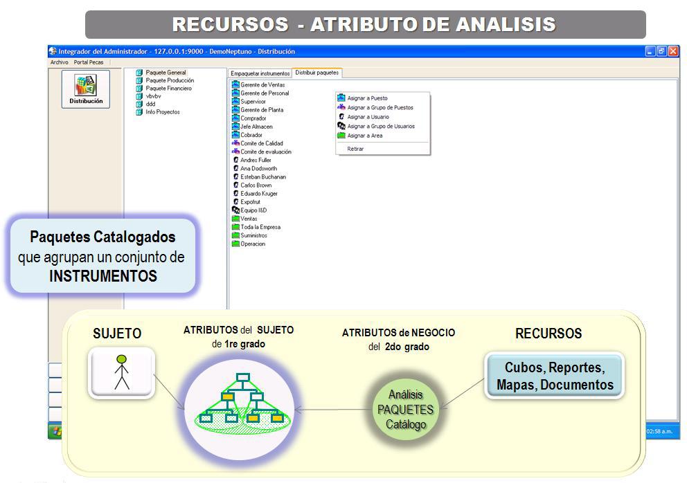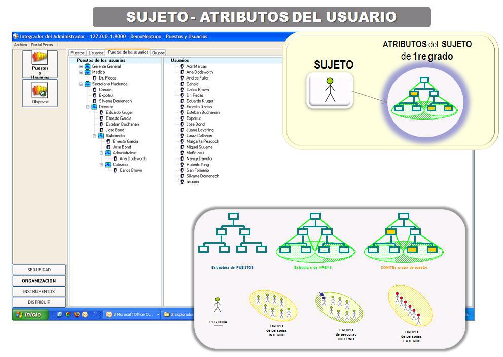 A continuación puede verse como se definen los atributos del usuario que permiten representar el organigrama de puestos, Comités, Grupos, Equipos.
